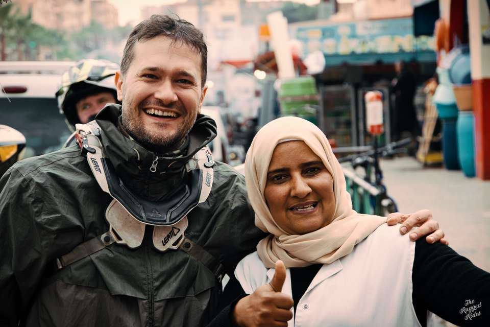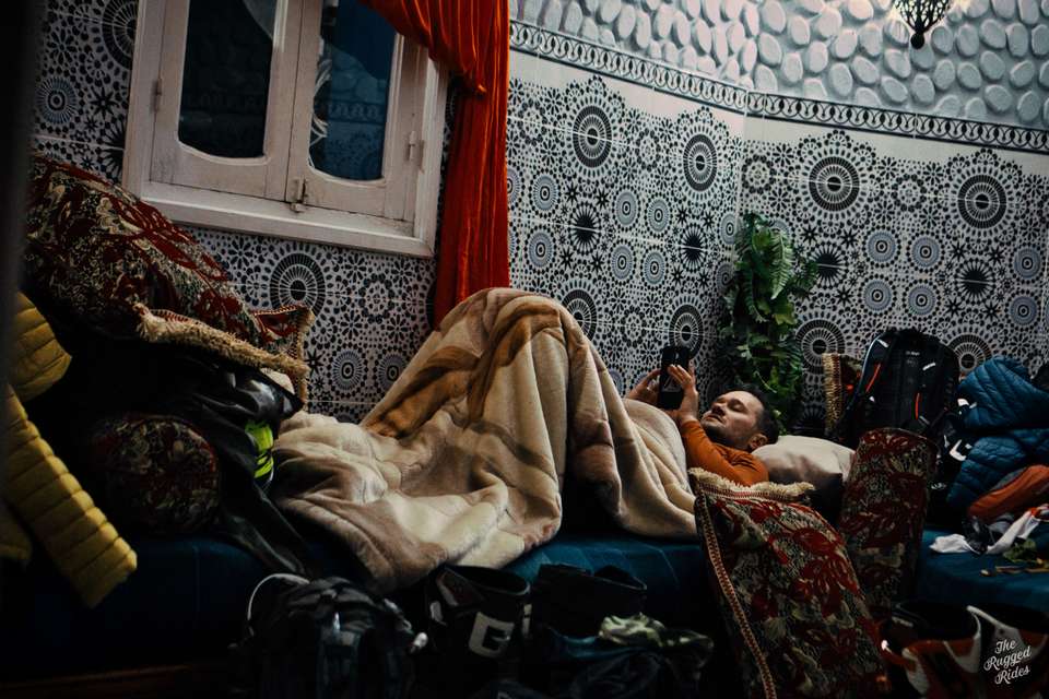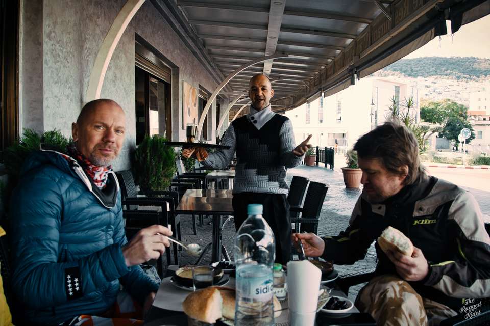 We reach the starting point fast, without adventures, well, unless you consider Piter's eco-driving to be an adventure :-) We pick up the guys and after a while of wandering on the roads of Andalucia, we find ourselves in the port. There, the standard game with swindlers begins. The guys are thinking they will sell tickets for more than in the official ferry company's booth, geniuses! Of course, we buy tickets normally and catch the nearest ferry. A few moments of blissful rocking send us straight into the embrace of African continent. With widespread looks of fellow passengers we pour over the liquids that are known to be very helpful with making bivuacs even better :-), right then head for the customs and duane booths. Remembering what it's like in Ceuta, I'm preparing myself for some major impediments, but no, there are no special effects, in Tangier Med everything runs just fine. During my future trips I will always try to choose this particular border crossing. We are still about to reach the proper trailhead, our track starts in Errachidia. At the end of the day we decide to take the tarmac to Chefchaouen. I recently read somewhere that this is the most instagrammed point on the map of Morocco, well.... The evening does not disappoint us, we have a really atmospheric lodging, excellent tajines and other goodness. Falling asleep once again I am thinking how well we are doing, and how smoothly Greta is riding. After all the servicing received during the winter she is unbelievable and rides like a brand new toy!