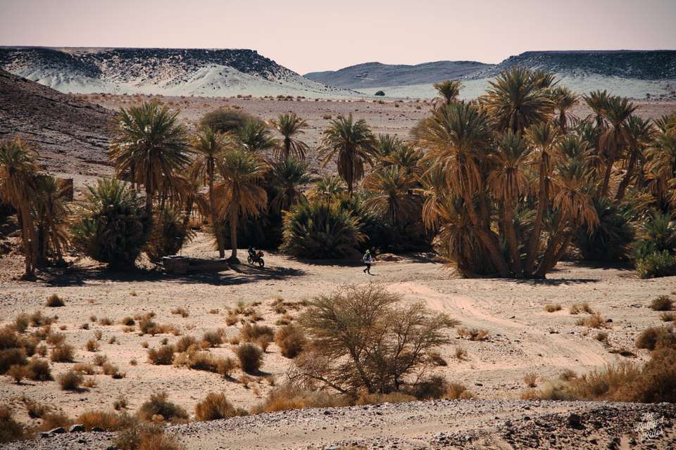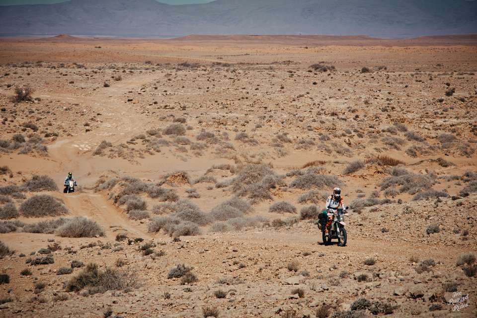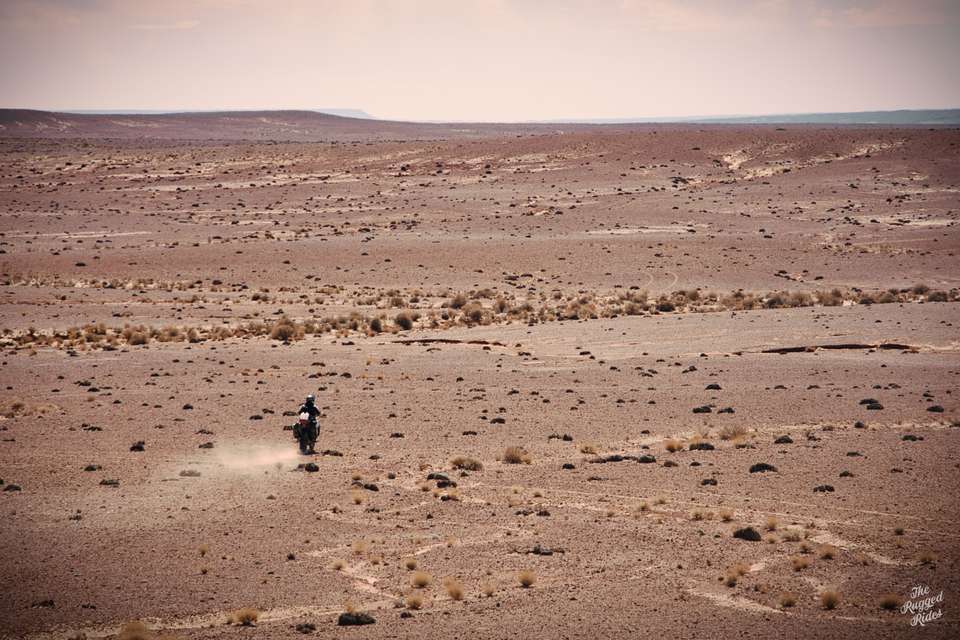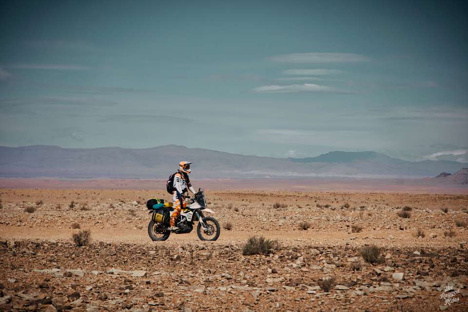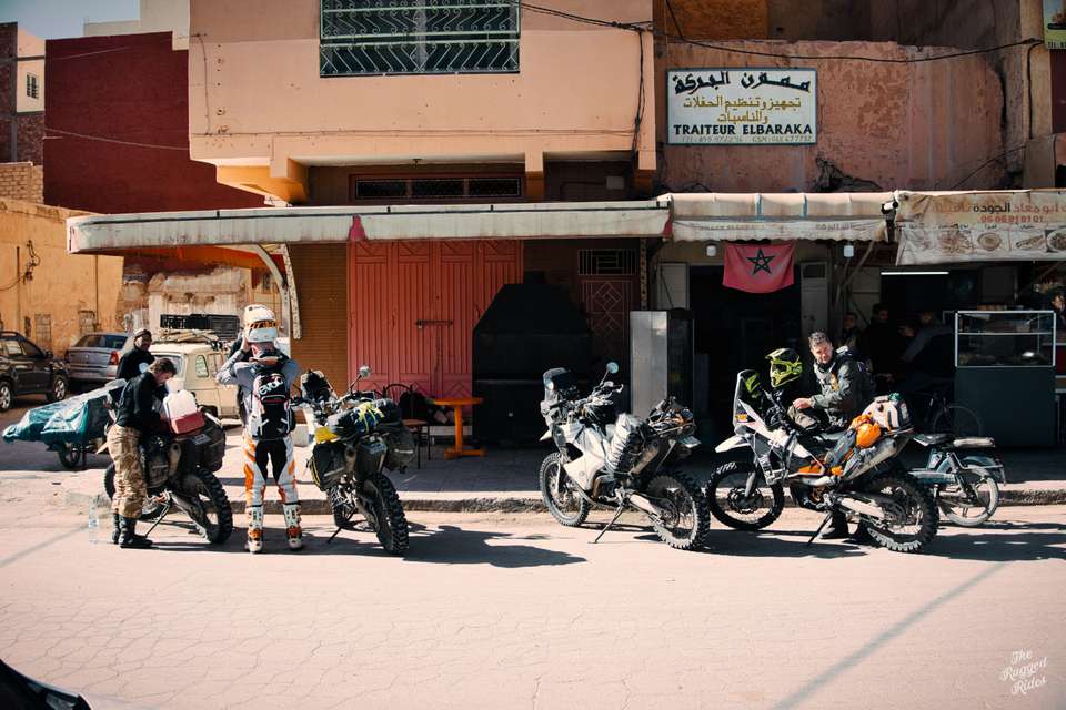We get together quickly in the morning, everyone feel that we have fallen a little behind schedule. Before we left, I had divided the whole track into sections so that I would know more or less how we were doing and whether we were to reach Dakar on time. We are still on the first of these stages. In the early sunshine we climb the mountains and bomb along it without even stopping. I notice, that there is ice lying on roadsides. We pull in Errachidia, where a real magic takes place in a street food when we order a breakfast :-). We take off our warm jackets, fill all tanks full, buy food.... And boy, now it begins, this is why we are here - the road to Dakar on tracks of the rallies! First, we ride the beautiful and varied Citroen track. The story behind that is that a century earlier, the car dealer form Casablanca lost his life here during a robbery. We are hoping for a bit more luck :-) I point Greta's front towards the desert. All the hidden emotions enter the scene, everything I have been waiting for. The open hamada provokes, lot of enthusiasm. The air is filled by the trilling braaaaaaaaap sounds, how beautiful is that! With the same track in the navigation, we all can have full freedom, each of us choosing his own line. This is also something what the radios we took are for, whenever we want to call up or check that everything is ok, we do it remotely, we don't have to see each other all the time.