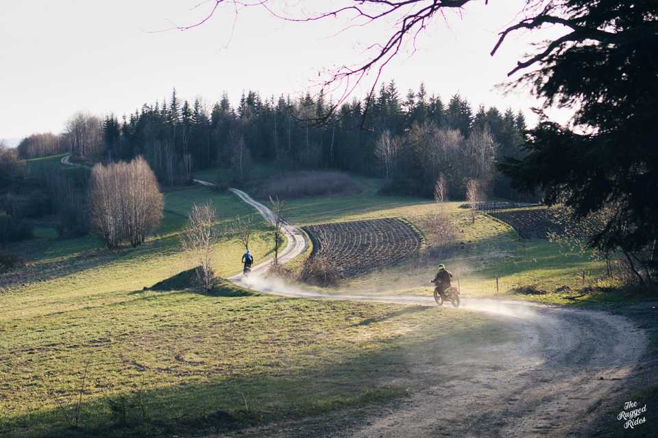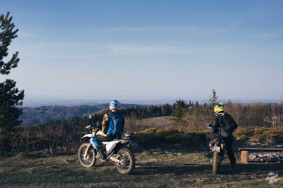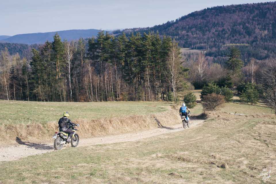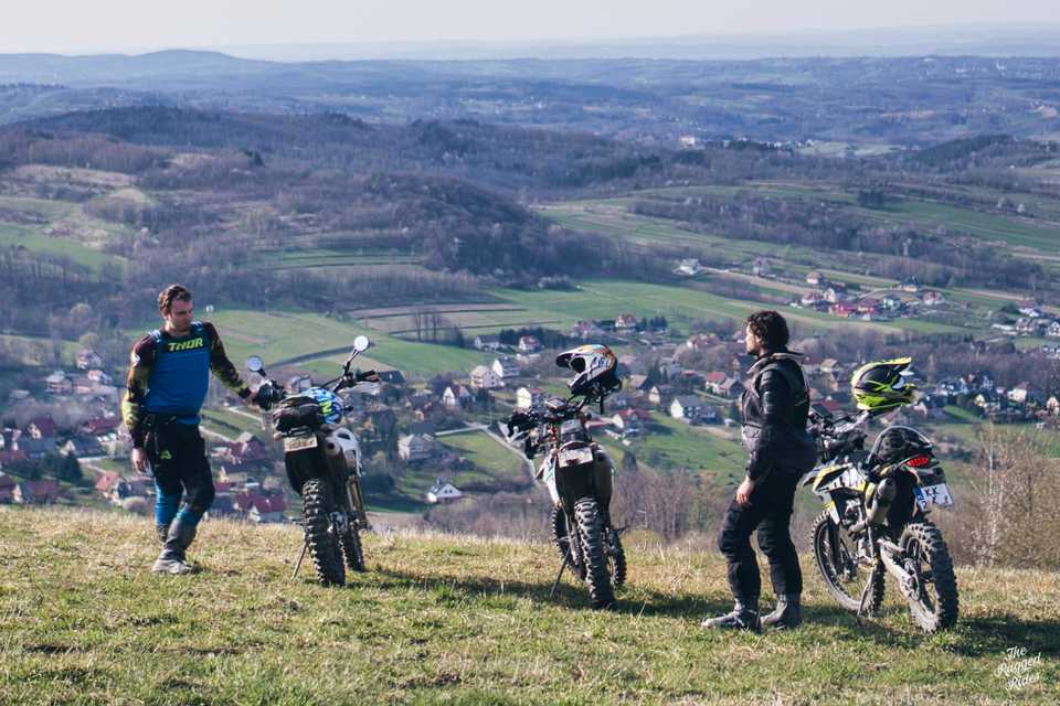Seize the day! ... we're going south from Kraków, I choose well-known paths and mix them with new ones, many of them turn out to be great singles, it's dry, the ride is great. We would probably remember this day like that, but it ends differently... It's Sunset. At zero speed, Piotrek wrecks his motorcycle. One missed powerslide, nearly highside and a tree that was right there. What to think about this? It was not fast, it was not foolish, situation like thousands, you leave one path and turn right to another. Stay safe! Let's think while riding, predict every situation, not only when it looks dangerous. Can we do something more?