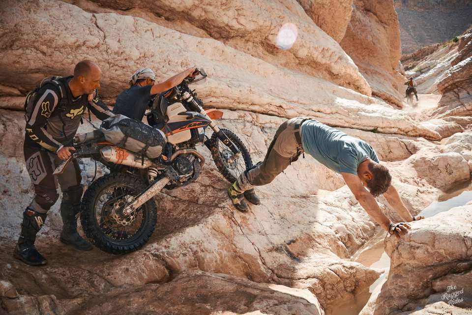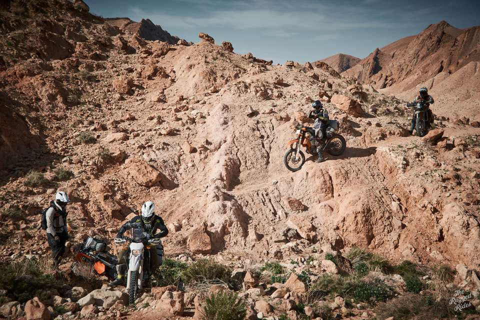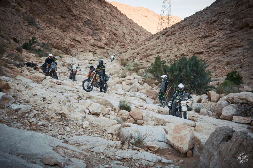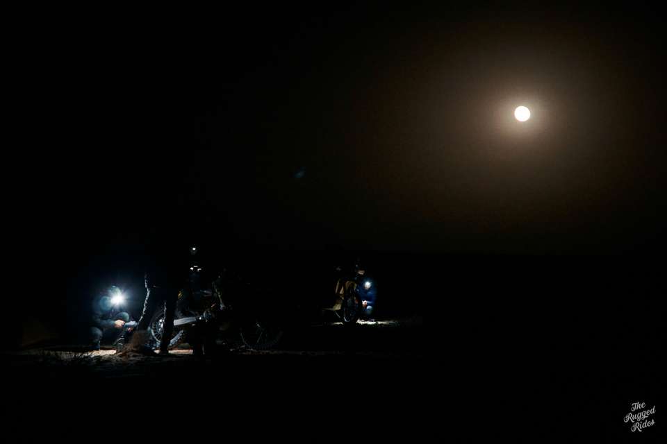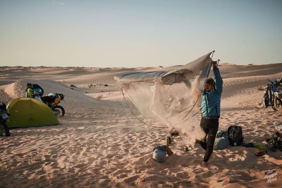 Of course that doesn't mean we blast across Tunisia like a 16-bike cavalry charge. We all follow the same track, but at different speeds, leaving bivouac at different times. We run into each other on the track or in random villages. But everyone meets in the bivouac every evening, all bivouacs were planned into the track ahead. This rule turned out to be a total gamechanger. It gives the whole thing a rally vibe, you have to push to reach bivouac every day, even after dark. And it brings everyone together every evening to share stories, fix bikes, sort out gear, and plan the next day. This isn't a race. It's all about endurance and making it through the whole track.