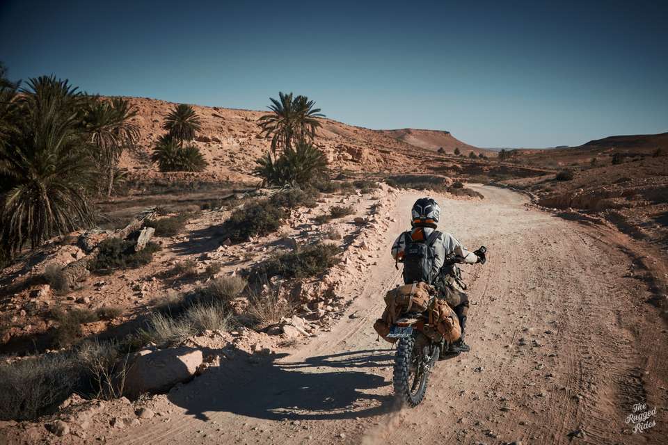 And here's the thing that hit me the most this time: Tunisia feels tight. Anyone who's ridden Western Sahara or even the hamadas along the Algerian border in Morocco will find Tunisia packed with villages, plantations, irrigation lines, roads… Only when you go way south does it start getting interesting. But only briefly, because unofficially everything south of Remada is a military zone (Sud), and tourists aren't allowed in.