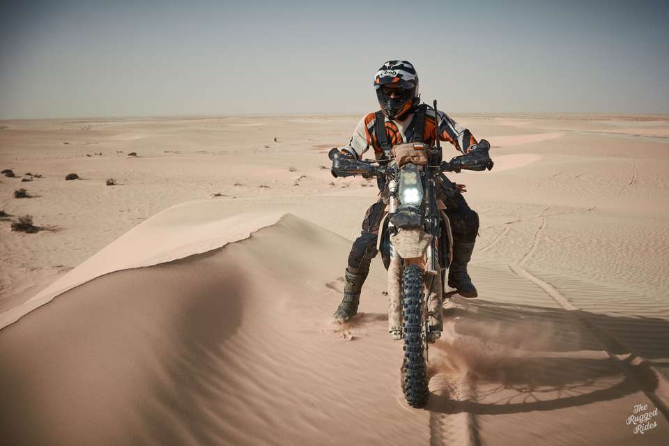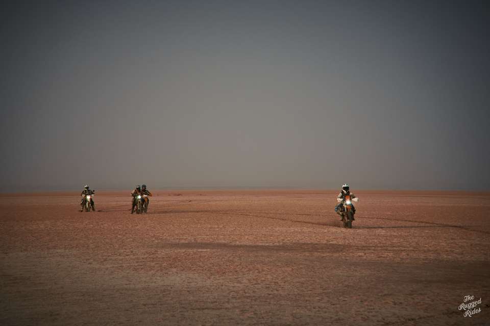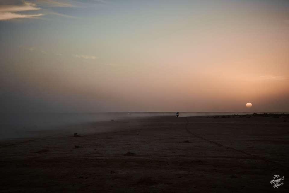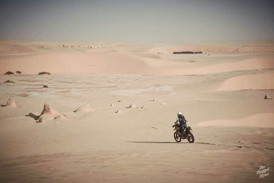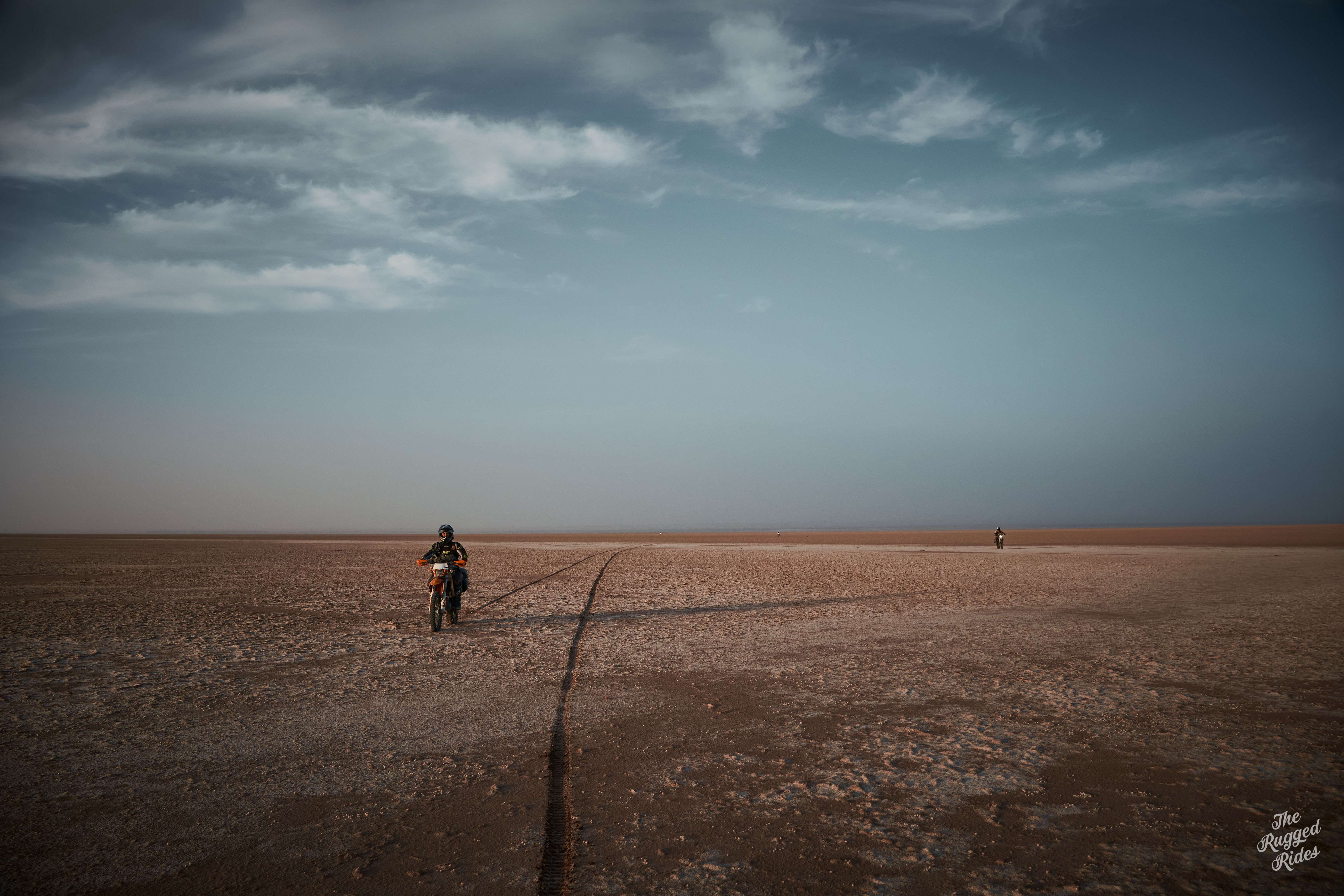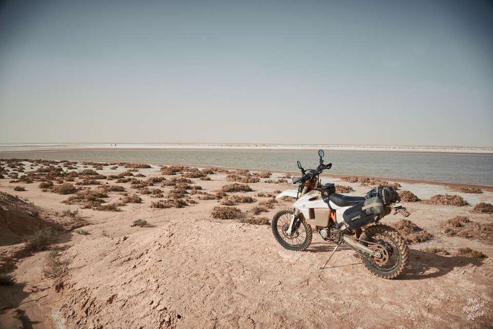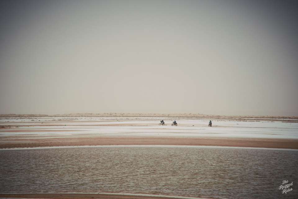 So we smartly chose to cross on the western part. At first super slow, stopping every few hundred meters to poke at the ground. One bike way out in the front, acting like our literal vanguard. And then, just few moments later, we were blasting across full steam ahead. Every now and then you could feel the ground sucking the bike, but luckily our bikes have enough power to get through. The feeling is incredible, probably a mix of fear of the unknown, stubbornness, curiosity… and pure stupidity. Was it worth it? Hell yeah, absolutely!